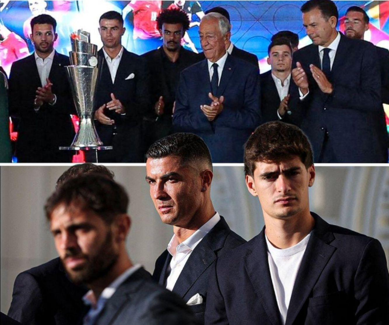 C罗与队友一起为若塔兄弟及科斯塔默哀。随后,C罗代表葡萄牙队向现场的人员展示了球队此前刚获得的欧国联冠军奖杯。欧国联夺冠时,若塔还在葡萄牙阵中贡献力量。